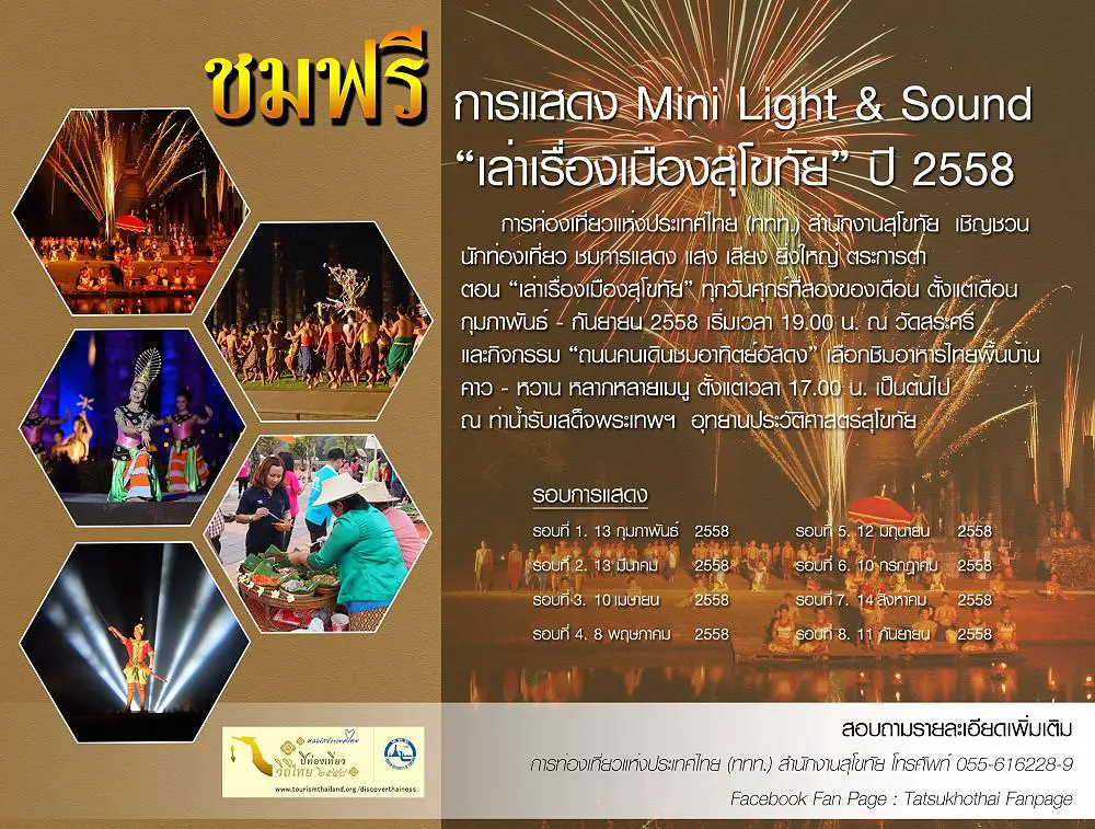 Like every year Sukhothai Historical Park will offer free mini sound and light shows in 2015. Here is the list of the date when the show will take place.