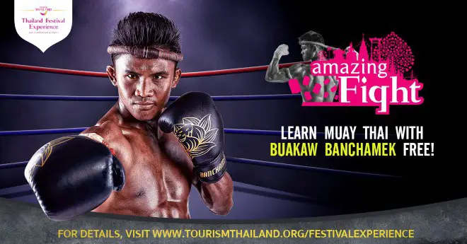 The Tourism Authority of Thailand (TAT) is staging the “Thailand Festival Experience – Mission 1: Amazing Fight” Thai boxing matches to enhance global awareness on the ancient Thai martial art, and is inviting Muay Thai lovers and martial art enthusiasts from around the world to apply for a chance to win a free trip to understand the life and philosophy behind the art of Muay Thai and learn proper techniques from Thailand’s famous Muay Thai boxer, Buakaw Banchamek.