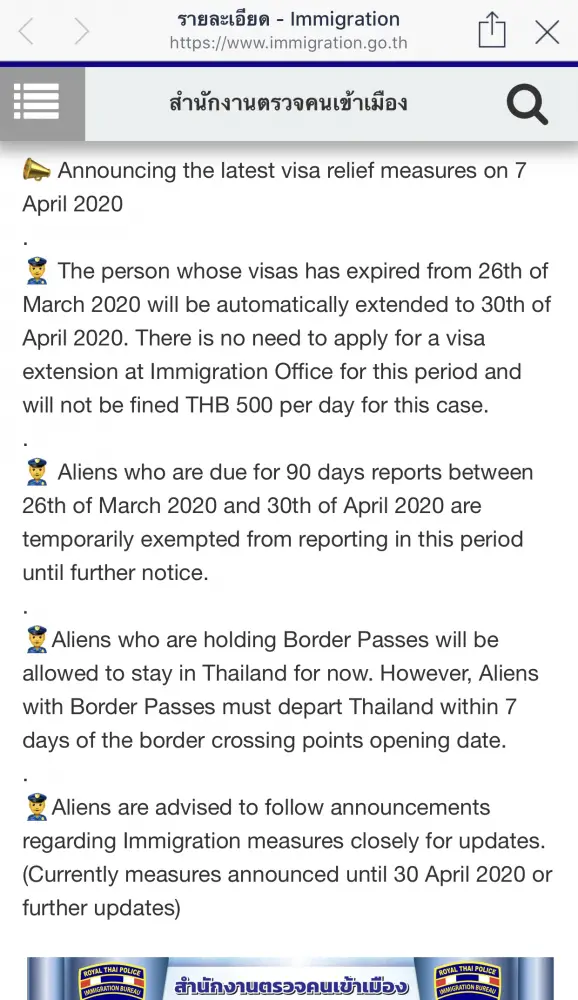De même, tout étrangers dont le visa ou l’exemption de visa se terminait le 26 mars ou après n’aura pas d’amende pour overstay par contre les 500 THB par jour d’amende seront toujours dû pour les autres.